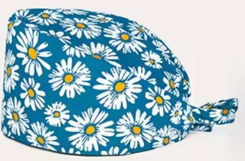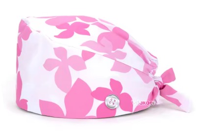 Gorro de disección para laboratorios y prácticas universitarias. De tejido estampado, con toalla interior para absorber el sudor de la frente y ajuste trasero con goma elástica.